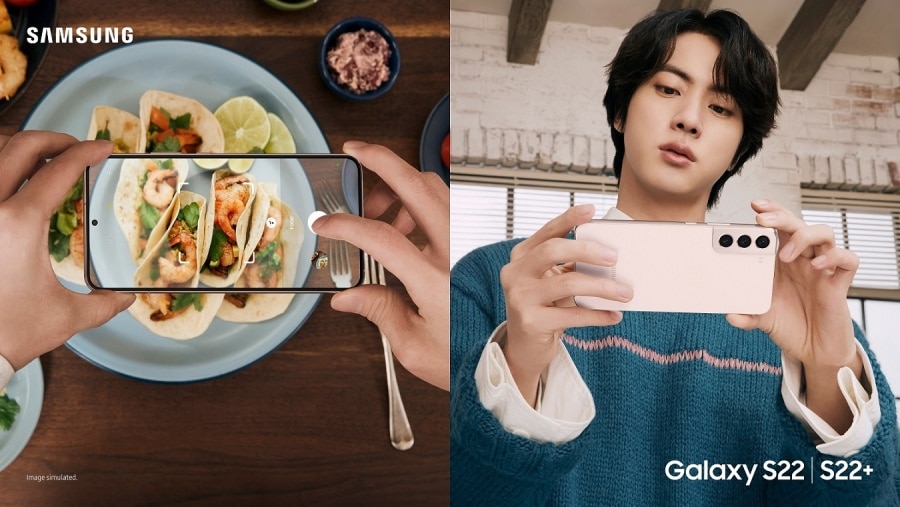 ต่อมาด้วย Jin ฮยองแห่งโวคอลไลน์ ที่บอกเลยว่าถือ Galaxy S22+ สีพิงค์โกลด์ได้แบบละมุนที่สุด สมฐานะWorldwide Handsome ที่ทำอะไรก็ดูดีไปเสียหมด โดยในภาพพี่จินใช้ฟีเจอร์ Scene Optimizer พร้อมเลือกโหมดอาหาร เพื่อใช้ AI ปรับเอฟเฟกต์และคุณภาพของภาพให้โดยอัตโนมัติ กดถ่ายเมื่อไหร่ ได้รูปปุ๊บ พร้อมลง IG Story ให้เหล่าอาร์มี่ได้ดูกันปั๊บ