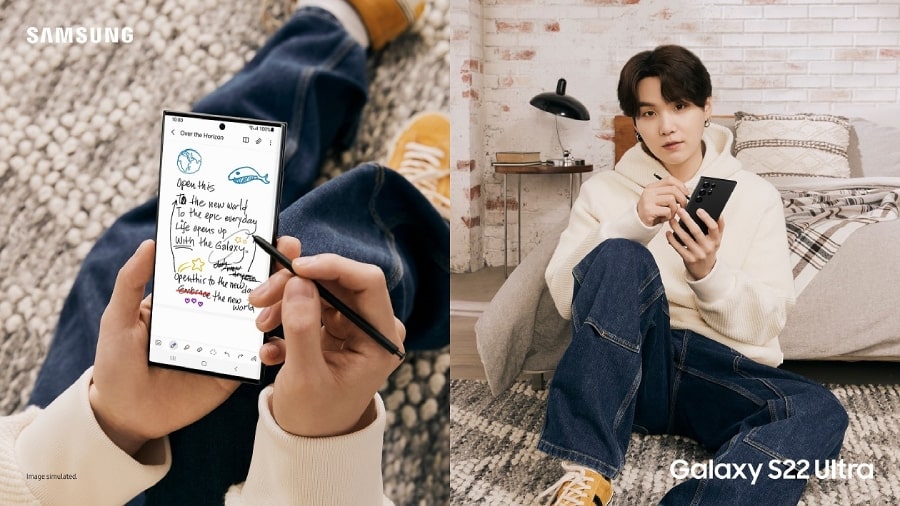 ตามมาด้วยสมาชิกคนที่สอง อย่าง SUGA หนุ่มโปรดิวเซอร์ นักแต่งเพลงคนนี้ ฟีเจอร์ที่ใช่คงหนีไม่พ้น S Pen ที่ไม่ว่าจะไปออกทัวร์คอนเสิร์ต เดินสายโปรโมตตามรายการ หรือแม้กระทั่งพักผ่อนหย่อนใจอยู่ที่บ้าน หากมีไอเดียใหม่เกิดขึ้น ก็สามารถหยิบ S Pen ขึ้นมาจดได้ทันทีโดยไม่ต้องเสียเวลาหากระดาษกับปากกา