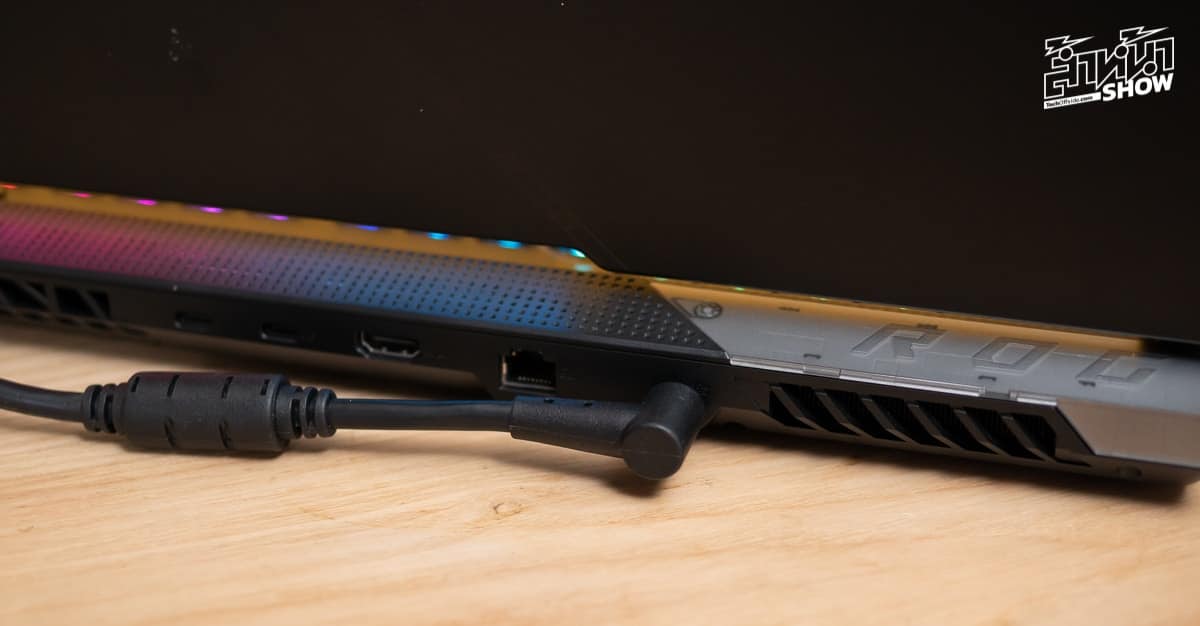 มาดูพอร์ตเชื่อมต่อของ ASUS ROG Strix Scar 15 ตัวนี้กันครับ โดยที่พอร์ตเชื่อมต่อส่วนใหญ่จะอยู่ด้านหลังของตัวเครื่อง ด้านหลังประกอบไปด้วยช่อง ThunderBolt , USB 3.2 Gen 2 Type-C (Power-Delivery) , HDMI 2.1b , 2.5Gbps LAN port และช่องเสียบชาร์จไฟ