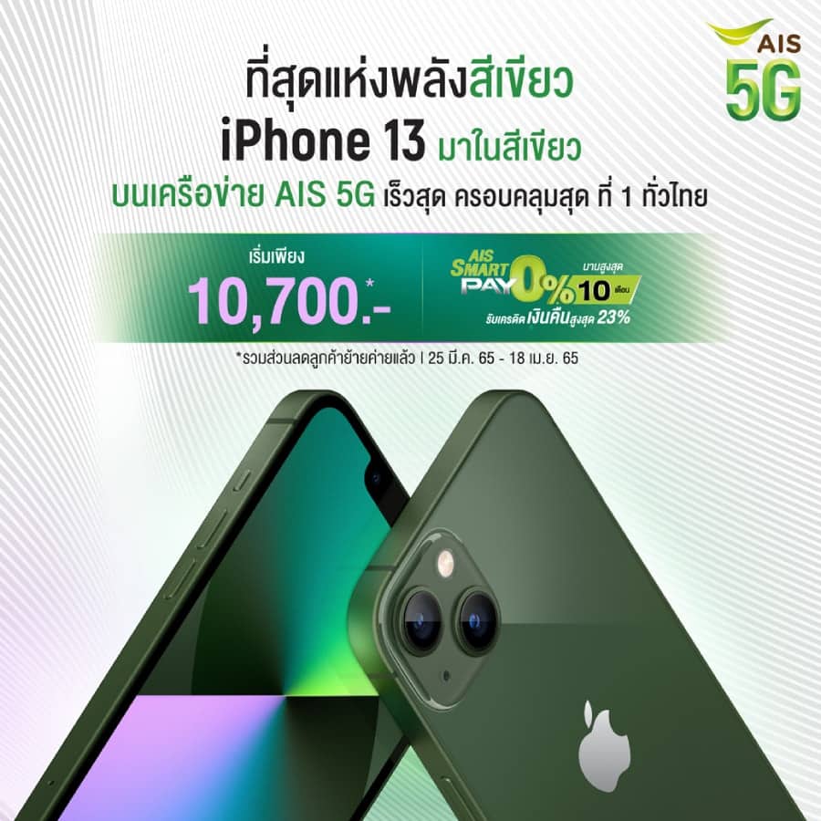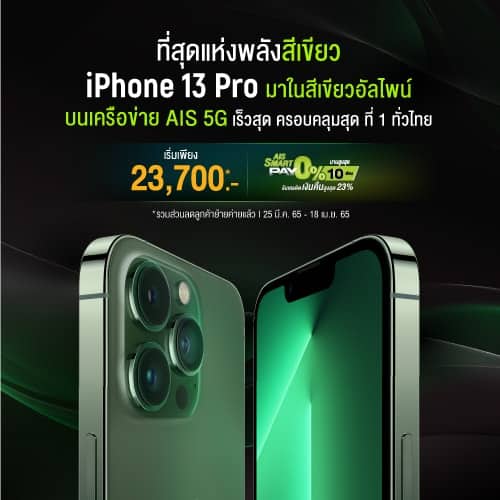 เมื่อสั่งจอง iPhone 13 Pro และ iPhone 13 Pro Max สีอัลไพน์กรีน และ iPhone 13 mini สีเขียว ลูกค้า AIS จะได้รับสิทธิ์