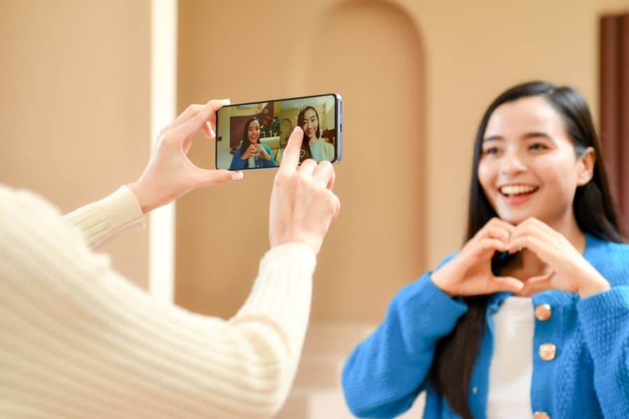 เพราะ Vlogger สามารถอัดวิดีโอทำคอนเทนต์ด้วยกล้องหน้าความละเอียด 16MP (และมาพร้อม AI Beauty ด้วยนะ) และกล้องหลังความละเอียดสูงถึง 108MP พร้อมกันได้แบบเรียลไทม์โดยไม่ต้องกดหยุด ได้ออกมาเป็นวิดีโอพร้อมแชร์คอนเทนต์คุณภาพลงโซเชียลได้เลย