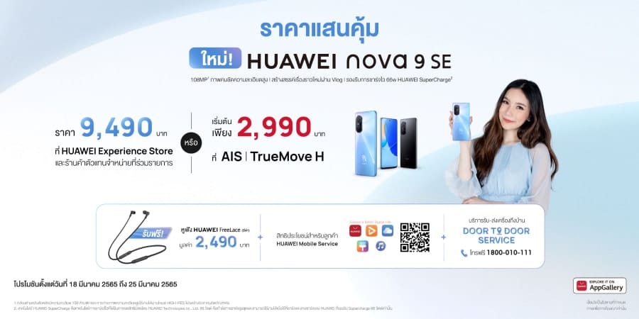 สามารถติดตามรายละเอียดโปรโมชันอื่นๆ ได้ทาง Facebook Huawei Mobile TH ช่องทางออนไลน์ที่ HUAWEI Store และเงื่อนไขโปรโมชันเพิ่มเติมได้ที่นี่