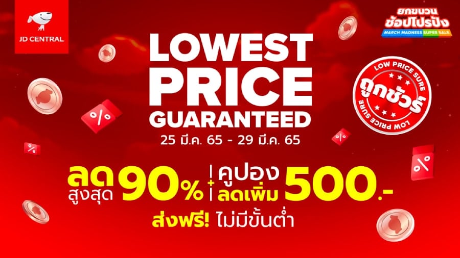 มีนาหรือจะสู้มีของ ถูกชัวร์ เจดี เซ็นทรัล (JD CENTRAL) ผู้นำด้านเทคโนโลยีอีคอมเมิร์ซและธุรกิจค้าปลีกในประเทศไทย ขอเอาใจเหล่านักช้อป แนะนำโปรโมชั่นดีๆ ฉลองรับซัมเมอร์นี้ กับ ‘MARCH MADNESS SUPER SALE ยกขบวนช้อปโปรปัง’ มหกรรมเซลล์ใหญ่ครั้งแรกของปี ขนทัพสินค้าแบรนด์ดัง หั่นราคาสู้ รับประกันช้อปถูกสุดชัวร์ (Lowest Price Guaranteed) ตั้งแต่วันที่ 25 มี.ค. – 29 มี.ค. นี้เท่านั้น ไม่คุ้มตรงไหนเอาปากกามาวง!