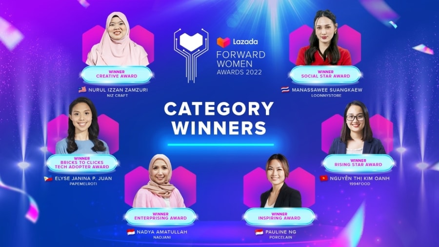 และเพิ่มรางวัลอีก 4 สาขาในปี 2022 คือ รางวัลสุดยอดผู้ประกอบการดาวรุ่ง (Rising Star)รางวัลสุดยอดผู้ประกอบการไฮบริด (Bricks to Clicks Tech Adopter) รางวัลสุดยอดผู้ประกอบการโซเชียลสตาร์ (Social Star) และรางวัลอันทรงเกียรติ คือรางวัลสุดยอดผู้ประกอบการหญิงแห่งปีจากลาซาด้า (Lazada Forward Woman of the Year Award) ที่มอบให้แก่ผู้ประกอบการ 6 คนจากแต่ละประเทศในเอเชียตะวันออกเฉียงใต้ที่ลาซาด้าดำเนินธุรกิจ ซึ่งรางวัลแต่ละสาขาสะท้อนให้เห็นถึงการปรับตัวและความมุ่งมั่นของผู้ประกอบการหญิงที่เชื่อว่าตัวเองสามารถขับเคลื่อนธุรกิจได้ รวมถึงได้เข้าใจวิสัยทัศน์ในการทำธุรกิจของผู้คว้ารางวัลที่นอกจากประสบความสำเร็จในการทำธุรกิจแล้วยังเป็นแบบอย่างที่ดีในการมีส่วนช่วยเหลือและสร้างสรรค์สิ่งดีๆ ให้กับสังคมและคอมมูนิตี้