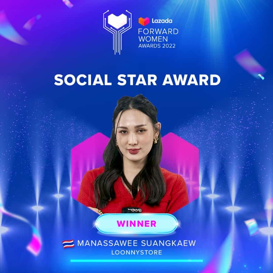 | รางวัลสุดยอดผู้ประกอบการโซเชี่ยลสตาร์(Social Star Award) | มนัสวี ทรวงแก้วLoonnystoreไทยลู ที ทุย ดวง (รองชนะเลิศ)Momo Martเวียดนาม |
