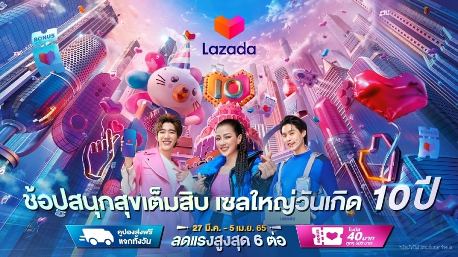 ครบรอบ 10 ปีทั้งที ความพิเศษที่ลาซาด้ามอบให้ยังไม่หมดเพียงเท่านี้ ลาซาด้าพร้อมส่งดีลและโปรโมชันสุดคุ้มค่าให้นักช้อปชาวไทยได้เพลิดเพลินในช่วงแคมเปญช้อปสนุกสุขเต็มสิบ เซลใหญ่วันเกิด 10 ปี ไม่ว่าจะเป็น ส่วนลดสูงสุด 6 ต่อ ให้นักช้อปได้เพลิดเพลินกับการสะสมส่วนลดมากสุดถึง 6 ต่อเพื่อดีลที่ดีที่สุด