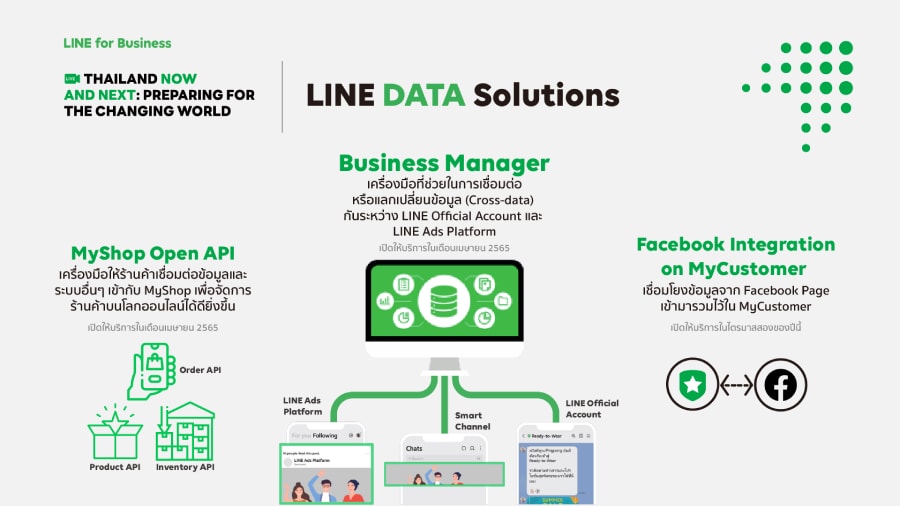 LINE มีการพัฒนาเทคโนโลยีต่างๆ มาเพื่อช่วยภาคธุรกิจไทยในการบริหาร จัดการข้อมูล ล่าสุด LINE พร้อมเปิดตัวโซลูชั่นใหม่ “Business Manager” เครื่องมือที่ช่วยในการแลกเปลี่ยนฐานข้อมูลลูกค้า (Cross-data) กันระหว่างบัญชี LINE Official Account (LINE OA) และบัญชี LINE Ads Platform (LAP) ของแบรนด์
