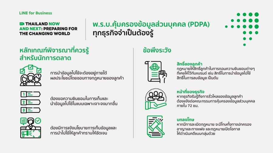 เมื่อหัวใจหลักในการทำตลาดผ่านช่องทางดิจิทัล คือความสามารถในการนำ Data มาใช้งานต่อเพื่อเพิ่มศักยภาพทางธุรกิจ แต่วันนี้เมื่อบริบททางธุรกิจเปลี่ยนไป การใช้งานดาด้ามีความยากขึ้น กลายเป็นความท้าทายของผู้ประกอบการทั่วโลกรวมถึงไทย ทั้งในด้านของความรู้ ความเข้าใจ ตั้งแต่การเก็บข้อมูล การนำไปใช้ และกฎหมายที่เกี่ยวข้อง งาน THAILAND NOW AND NEXT: PREPARING FOR THE CHANGING WORLD จัดโดย LINE ประเทศไทย ได้เปิดเวทีให้ผู้เชี่ยวชาญที่เกี่ยวข้องกับการใช้งานดาต้าในธุรกิจ มาช่วยไขคำตอบนี้อย่างละเอียด