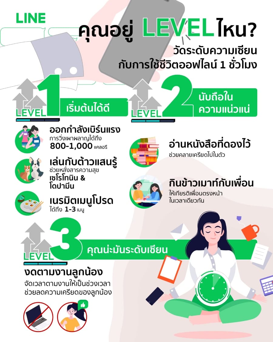 และนี่ก็ความท้าทายเล็กๆ แต่น่าสนุกสำหรับหลายๆ คน เป็นส่วนหนึ่งของแคมเปญ THE OFFLINE HOUR ที่ LINE ประเทศไทยกำลังผลักดันให้คนไทยมี Digital Wellbeing เพราะการจะมีชีวิตดิจิทัลที่ดีในระยะยาว เราก็ไม่ควรละเลยที่จะรักษาสมดุลใช้ชีวิตออฟไลน์ให้มีคุณภาพด้วยเช่นกัน