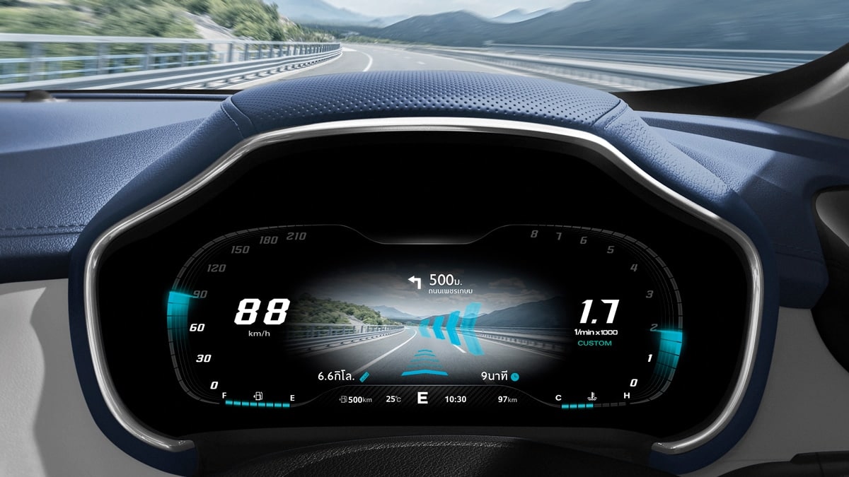 - ระบบนำทางเสมือนจริง หรือ AR NAVIGATION ทำงานร่วมกันระหว่างกล้องหน้าที่ถ่ายทอดสภาวะแวดล้อมจริงในขณะเดินทางร่วมกับระบบนำทาง Navigation แบบ real time ช่วยให้การใช้งานระบบนำทางแม่นยำมากยิ่งขึ้น