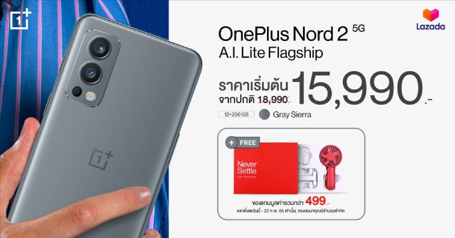 และพิเศษสำหรับ LAZADA OnePlus Nord 2 5G (12+256 GB ) ราคา 15,990 บาท