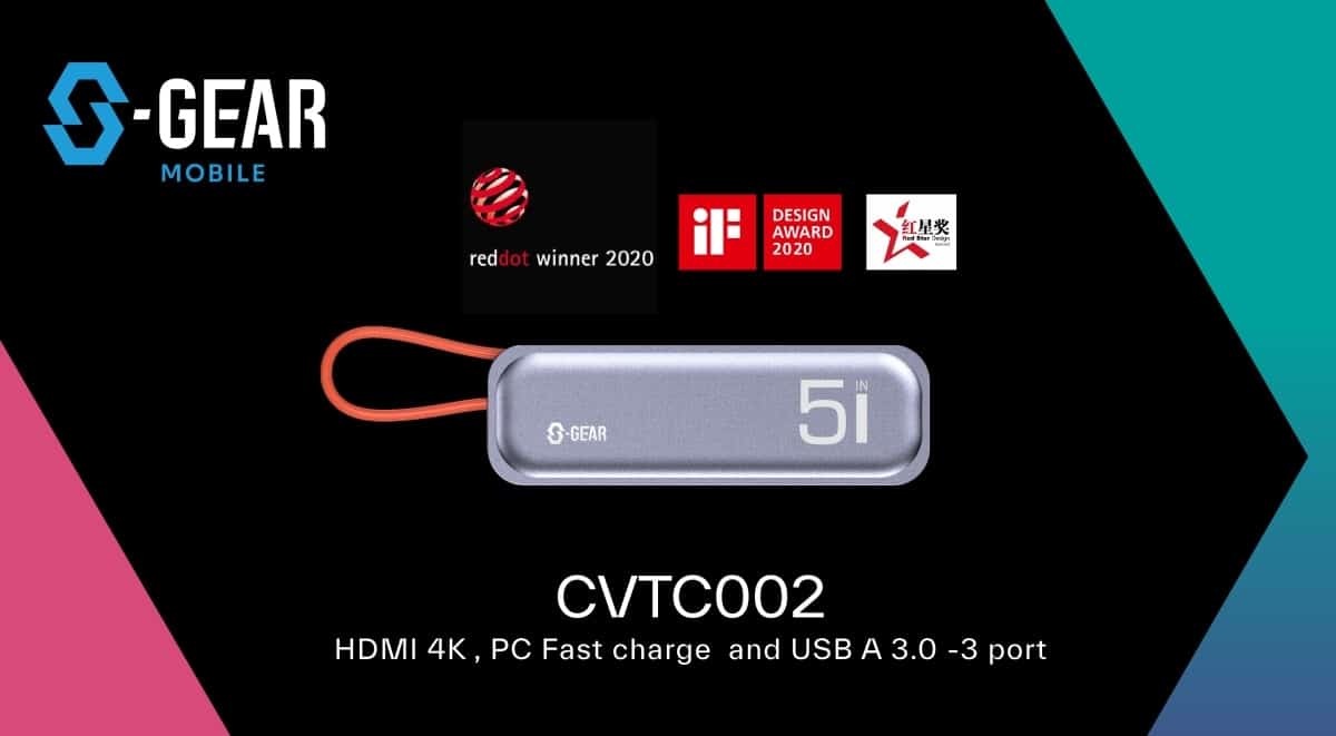 - คอนเวอร์เตอร์ 5 in 1 รุ่น CVTC002-5in1 ที่ได้รับรางวัลการออกแบบ Design Red Dot 2020 มาพร้อม HDMI 4K, PC Fast Charge และ USB A 3.0 จำนวน 3 พอร์ท