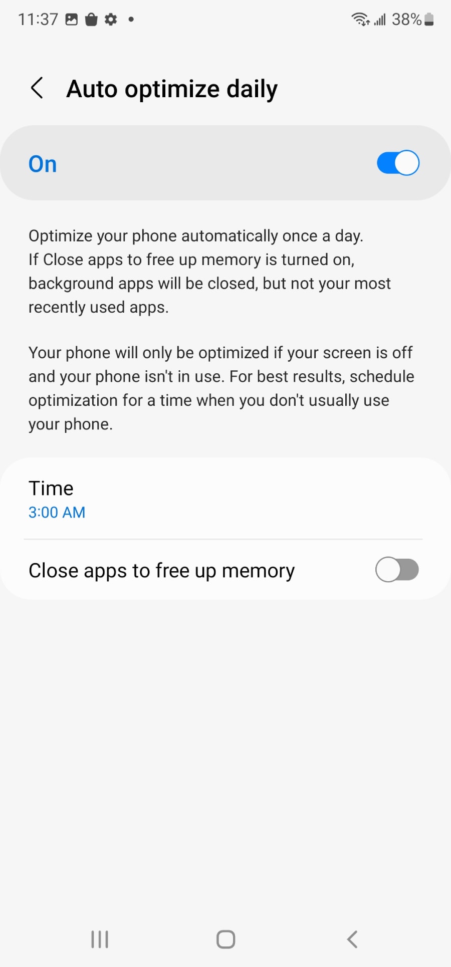 Galaxy S22 Series มาพร้อมแบตเตอรี่ขนาดใหญ่และระบบชาร์จเร็ว เพื่อรองรับการใช้งานได้ยาวนานตลอดทั้งวัน และแน่นอนว่าการใช้งานบางโหมดหรือบางแอปพลิเคชันที่ต้องประมวลผลมากก็ทำให้ใช้แบตเตอรี่มากเช่นกัน อีกทั้งยังมีหลายครั้งที่เรามักจะเผลอเปิดแอปฯ ต่างๆ ค้างทิ้งไว้ทำให้กินแบตฯ โดยไม่รู้ตัว แต่ถ้าจะมานั่งไล่ปิดแอปฯ ที่ไม่ใช้งานจากหน้าจอทีละแอปฯ คงจะเสียเวลาหลายนาที แต่ปัญหานี้จะหมดไปเพียงเข้าไปที่การตั้งค่าเพื่อเปิดใช้งาน Auto Optimize Daily ระบบจะปิดแอปฯ ที่ไม่มีการใช้งานโดยอัตโนมัติเพื่อประหยัดแบตเตอรี่ อีกทั้งยังสามารถตั้งเวลาที่จะทำการปิดแอปฯ อัตโนมัติได้อีกด้วย เช่น 02.00 น. ขณะนอนหลับ หรือช่วงเย็นหลังเลิกงาน เป็นต้น
