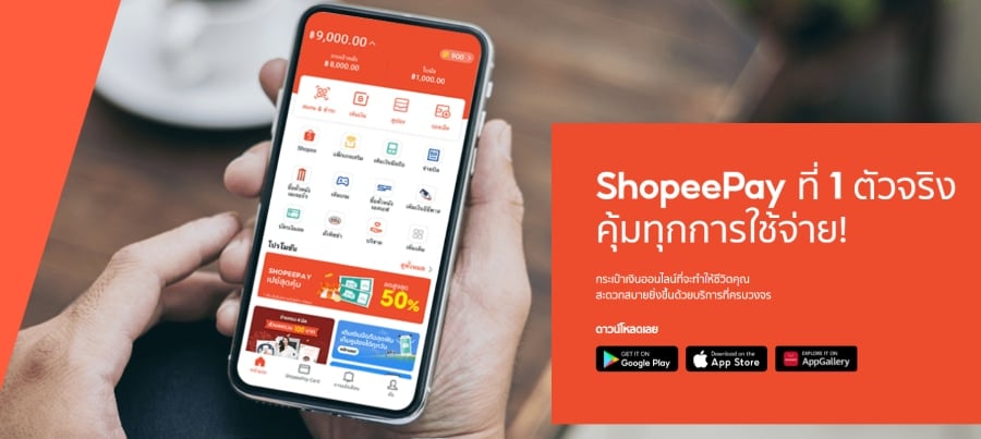 เพลิดเพลินกับการใช้จ่ายที่ดียิ่งขึ้นกับ ShopeePay บนแอปพลิเคชันช้อปปี้ เพียงกดอัปเดตแอปพลิเคชันช้อปปี้เป็นเวอร์ชั่นล่าสุด หรือดาวน์โหลดแอปพลิเคชันช้อปปี้ได้ฟรีจาก App Store, Google Play Store และ App Gallery