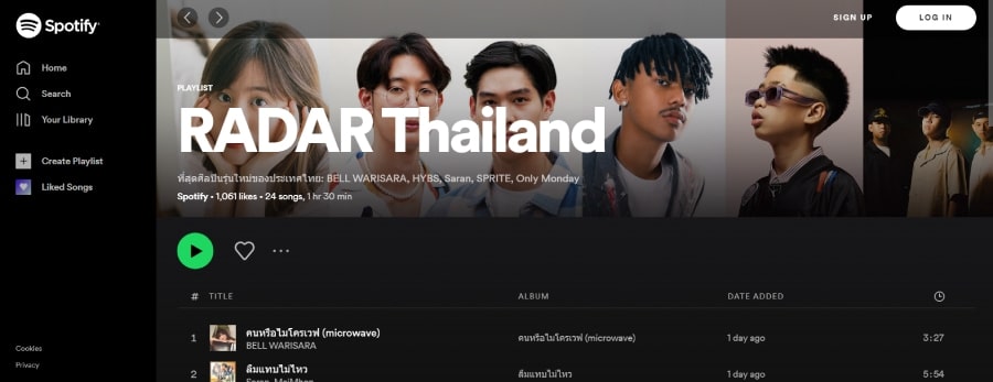 ทั้งนี้ หนึ่งในวิธีสำคัญที่ Spotify จะช่วยเพิ่มการค้นพบศิลปินใหม่และเพิ่มฐานแฟนคลับ ก็คือผ่านทางเพลย์ลิสต์อย่าง RADAR หรือเพลย์ลิสต์อื่นๆ ในประเทศ และเพื่อยกระดับอุตสาหกรรมเพลงในประเทศไทย Spotify ได้เลือกสรรศิลปินไทยมากกว่า 33,000 รายเข้ามาอยู่ใน Editorial Playlists เป็นครั้งแรกในระหว่างปี 2020 และปี 2021