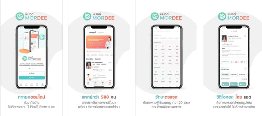 สำหรับผู้ที่สนใจใช้บริการแอป MorDee-หมอดี สามารถพบหมอออนไลน์ได้ทุกที่ สะดวกสบาย ง่าย และรวดเร็วใน 5 ขั้นตอน เพียงดาวน์โหลดแอป MorDee-หมอดี ที่ App Store, Play Store และ HUAWEI AppGallery แล้วลงทะเบียน จากนั้นทำการค้นหาแผนกหรือคลินิกตามอาการป่วย เลือกแพทย์หรือผู้เชี่ยวชาญที่ต้องการปรึกษา ทำการนัดหมาย พร้อมเลือกช่องทางในการปรึกษา และชำระเงินหรือเคลมประกัน เพียงเท่านี้ก็สามารถปรึกษาแพทย์และผู้เชี่ยวชาญด้านสุขภาพตามเวลาที่นัดหมายไว้ได้แบบส่วนตัว โดยจะได้รับสรุปผลการปรึกษา และสามารถซื้อยาตามคำแนะนำของแพทย์ แล้วรอรับยาที่บ้าน