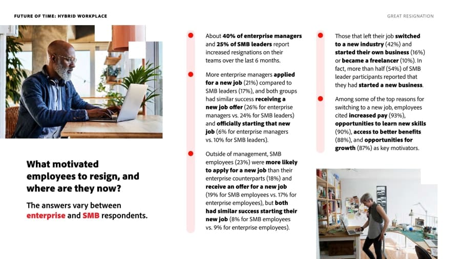 รายงานวิจัยของ Adobeเผย มากกว่า 70% ของพนักงานและผู้จัดการพบว่า การเข้าถึงเครื่องมือดิจิทัลที่ทันสมัย เป็นปัจจัยสำคัญที่ช่วยลดอัตรา Great Resignation