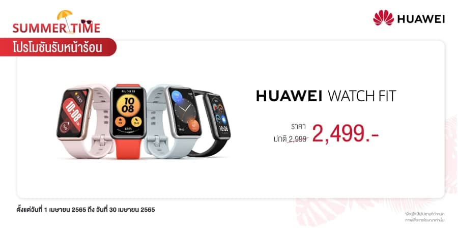 หัวเว่ย คอนซูมเมอร์ บิสสิเนส กรุ๊ป (ประเทศไทย) ยกขบวนดีไวซ์ตั้งแต่รุ่นใหม่ล่าสุดไปจนรุ่นสุดฮอต ทั้งสมาร์ทโฟน แล็ปท็อป แท็บเล็ต และ สมาร์ทวอทช์ พร้อมเสิร์ฟกับ “Summer Time” โปรฮอตท้าลมร้อน ให้ทั้งสายเที่ยว สายเรียน สายทำงาน สายบันเทิง และสายสุขภาพให้เลือกซื้อได้อย่างจุใจ ทั้งลดราคาและของแถมสุดพิเศษให้ไปใช้เข้าชุดกันให้ครบครันเต็มประสิทธิภาพ พร้อมแล้วให้พุ่งตัวไปซื้อหาที่ HUAWEI Experience Store ทุกสาขา และ ร้านค้าตัวแทนจำหน่ายที่ร่วมรายการ ตั้งแต่วันที่ 1 เมษายน 2565 ถึง 30 เมษายน 2565