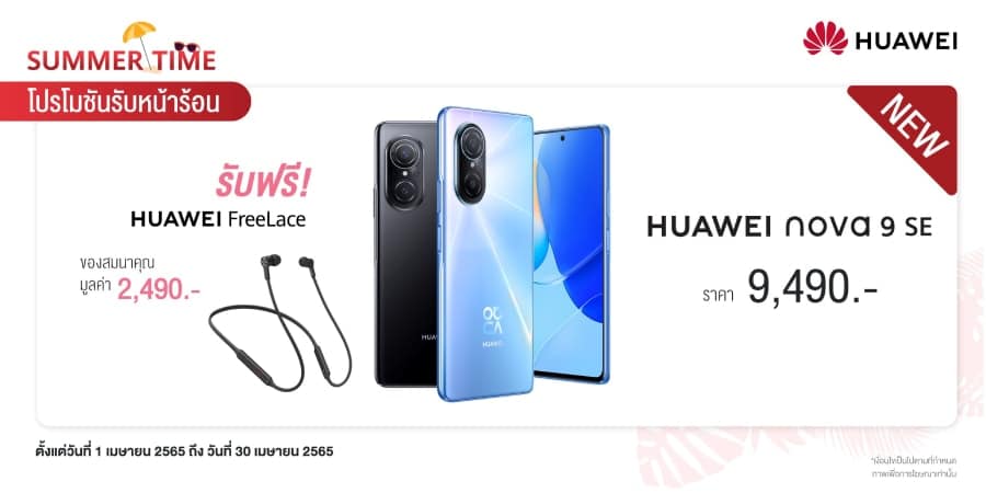 และล่าสุดกับอีกหนึ่งสมาร์ทโฟนตระกูล nova ราคาดึงดูดใจ กับ HUAWEI nova 9 SE ราคาดีถูกใจสาย VLOG เพราะมาพร้อมลูกเล่นมากมาย ทั้งการอัดวิดีโอกล้องหน้า-หลัง พร้อมกันในวิดีโอเดียวกับ Dual-View Video ที่เราจะได้เห็นสองจอจากกล้องหน้าหลังพร้อมกัน หรืออีกฟีเจอร์กับ Continuous Front/Rear Recording สลับอัดวิดีโอกล้องหน้า-หลังแบบไม่ต้องกดหยุด ไหลลื่นสะดวกสุดๆ เอาใจสายถ่ายวิดีโอ ราคา 9,490 บาท พร้อมรับฟรีหูฟัง HUAWEI FreeLace มูลค่า 2,490บาท