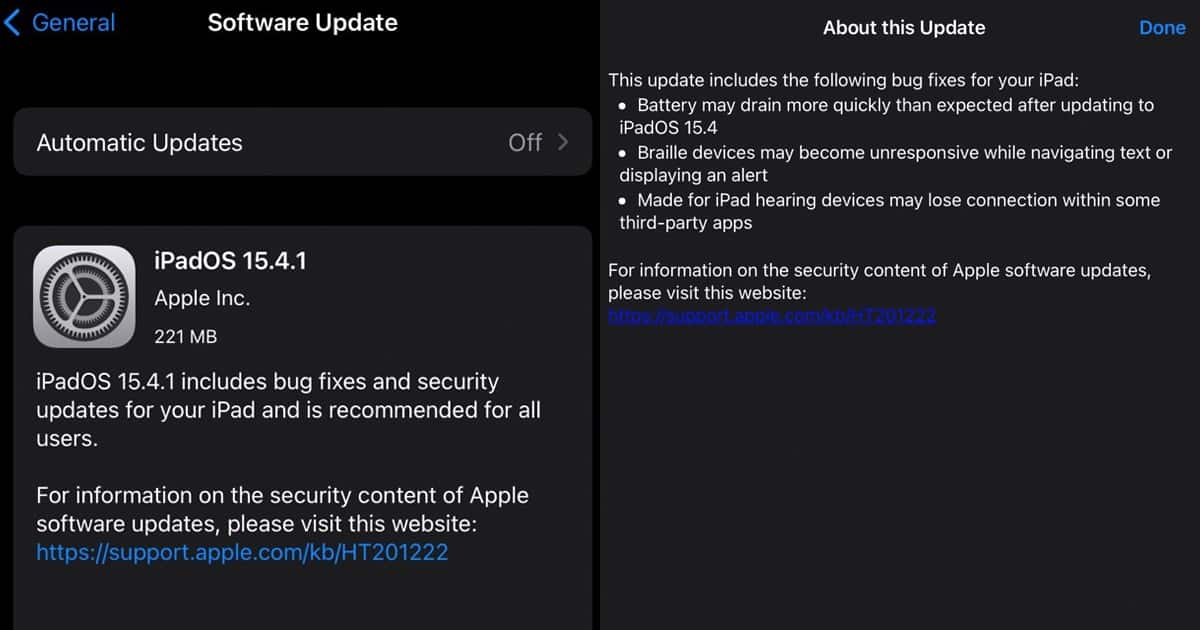 iOS 15.4.1 และ iPadOS 15.4.1 มีการแก้ไขปัญหาดังนี้