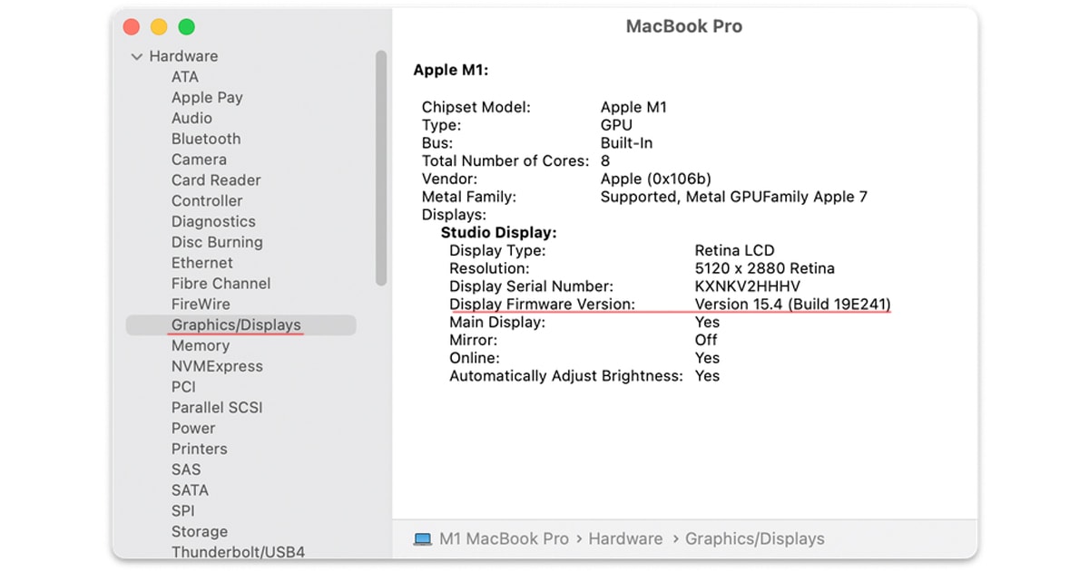 ข้อมูลในส่วน System Information ในส่วน Graphics/Displays นั้นแสดงให้เห็นว่า Studio Display นั้นใช้งานเวอร์ชัน 15.4 (Build 19E241) ที่เป็นหมายเลข Build เดียวกับ iOS 15.4 และ iPadOS 15.4 ซึ่งเป็นข้อบ่งชี้ได้ว่า Studio Display อาจใช้งาน iOS เวอร์ชันเต็มได้
