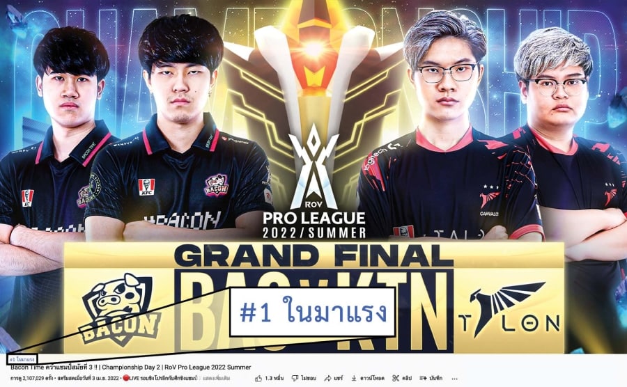 บทสรุปการแข่งขัน RoV Pro League 2022 Summer Bacon Time คว้าแชมป์พร้อมเงินรางวัล 6,000,000 บาท และสิทธิเข้าร่วม AIC 2022