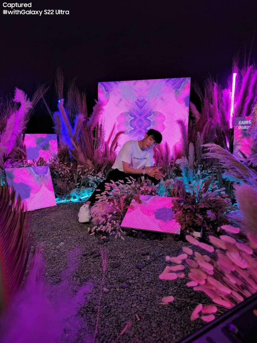 นอกจากนี้ ห้อง S22 Ultra Verse ยังมีการจัดมุมต่างๆ เพื่อให้ผู้เข้าชมสามารถทดลองถ่ายภาพด้วยกล้อง Nightography ของ Galaxy S22 Ultra ได้แบบจัดเต็มครบทุกเลนส์ ไม่ว่าจะเป็นเลนส์ Wide หรือ Ultra Wide ไปจนถึงโหมด Night Portrait ที่ถ่ายภาพบุคคลในที่มืดได้แบบสวยตะลึง พร้อมรายละเอียดหน้าชัดหลังเบลอ มืดแค่ไหนก็ไม่หวั่น หรือจะลองเซลฟี่ด้วยกล้องหน้าความละเอียด 40 ล้านพิกเซลก็สวยถูกใจไม่แพ้กัน โดยผู้เข้าชมสามารถถ่ายภาพได้เต็มที่ด้วยมุมวางสมาร์ทโฟน Galaxy S22 Ultra ที่ช่วยให้ถ่ายภาพด้วยตนเองได้อย่างสะดวกง่ายดายผ่านฟีเจอร์ Air Command ใน S Pen ที่แม้จะไปคนเดียวก็ไม่ต้องกลัวว่าจะไม่ได้รูปไว้สร้างคอนเทนต์