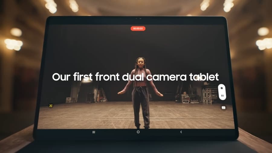เพื่อตอบโจทย์การทำงานแบบ Work From Anywhere และรองรับการทำงานแบบ Hybrid Working ที่คนต้องทำงานแบบออนไลน์และออฟไลน์ไปควบคู่กัน Galaxy Tab S8 Ultra จึงได้กล้องหน้าคู่แบบมุมกว้างพิเศษ (Ultra-wide front camera) ความละเอียด 12 ล้านพิกเซล และคุณภาพวิดีโอระดับ 4K พร้อมฟีเจอร์การจัดเฟรมอัตโนมัติ (Auto Framing)[9] ที่ช่วยจับภาพผู้ใช้ขณะที่เคลื่อนไหว ตลอดจนไมโครโฟน 3 ตัวและระบบเสียง Dolby Atmos มอบประสบการณ์การประชุม Video Conference ได้อย่างมืออาชีพ นำเสนองานได้อย่างไม่มีติดขัด