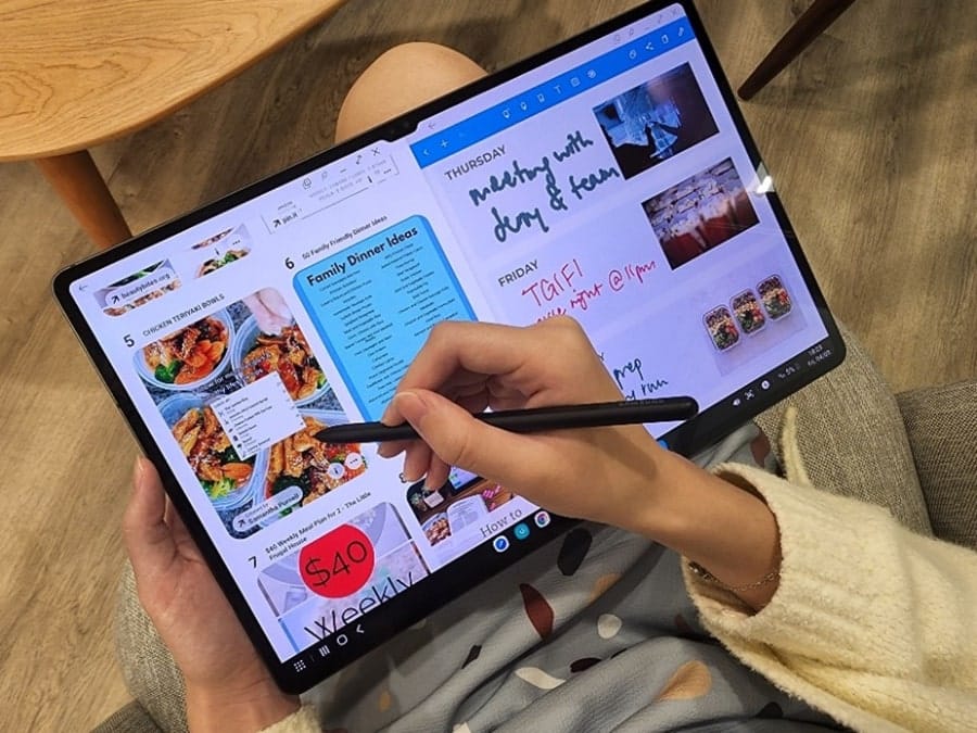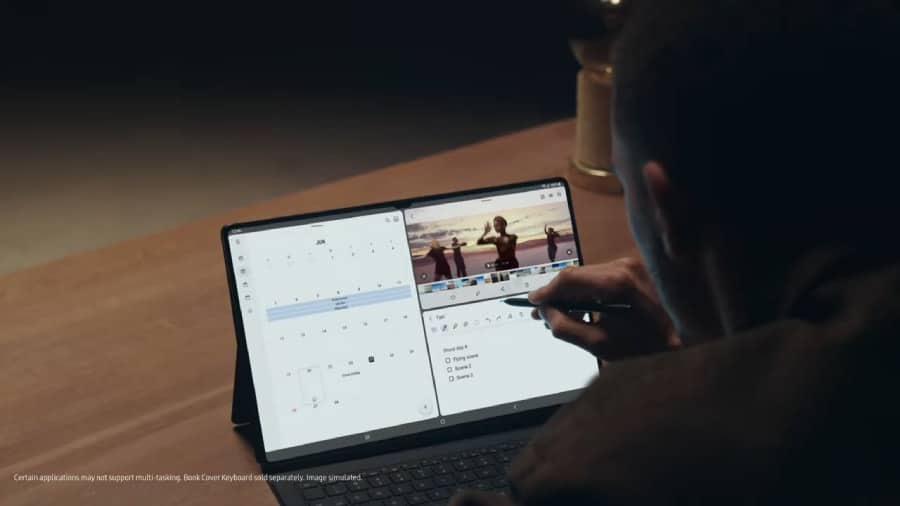 และด้วยหน้าจอขนาดใหญ่ยังช่วยให้ใช้งานแบบมัลติทาส์กได้อย่างยอดเยี่ยมผ่านฟีเจอร์ Multi-Active Window ที่สามารถเปิดใช้แอปพลิเคชันได้มากถึง 3 แอปฯ ในเวลาเดียวกัน อีกทั้งยังสามารถปรับขนาดของแต่ละหน้าต่างได้อย่างอิสระ โดยมีรูปแบบการใช้งานถึง 4 เลย์เอาท์ ไม่ว่าจะเป็นการใช้งานในแนวตั้งหรือแนวนอน แล้วแต่ความต้องการของการใช้ทำให้การจดโน้ตควบคู่ไปกับการหาข้อมูลบนอินเทอร์เน็ต พร้อมเปิดวิดีโอฟังเพลงไปด้วยระหว่างการทำงานทำได้อย่างง่ายดาย