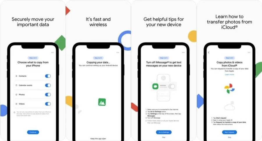 ตัวแอปพลิเคชั่นจะช่วยให้ผู้ใช้โอนย้ายข้อมูลที่จำเป็นทั้งหมด จากไอโฟนไปยังแอนดรอยด์ได้อย่างรวดเร็วและปลอดภัย ซึ่งก่อนหน้านี้ต้องใช้การสำรองข้อมูลบน PC, ระบบคลาวด์ หรือแม้แต่บนการ์ด SD เพื่อโอนข้อมูลไปยังแอนดรอยด์เครื่องใหม่ ที่แน่นอนว่าวุ่นวายและมีขั้นตอนเยอะแยะไปหมด