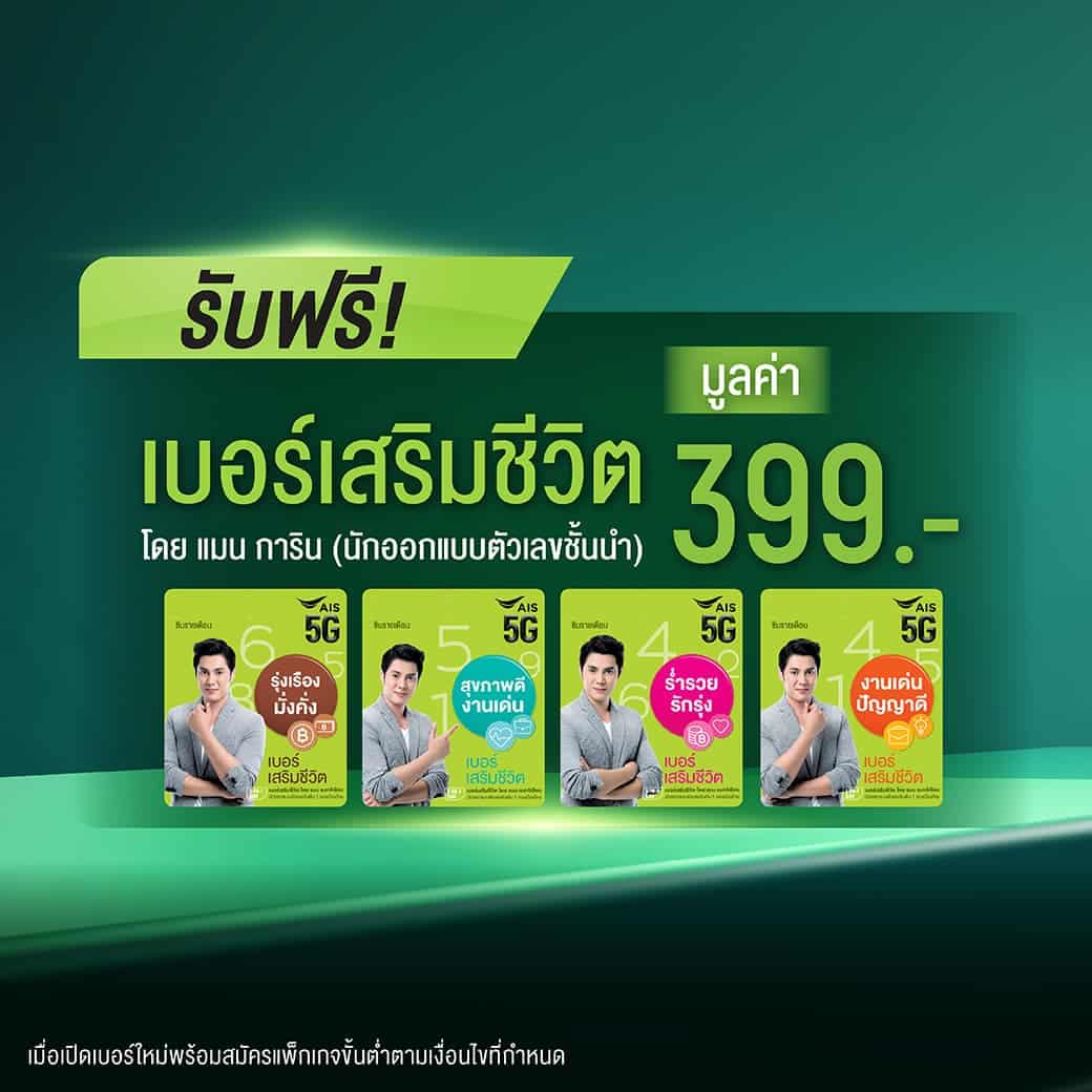 • รับฟรี! เบอร์เสริมชีวิต จากแมน การิน มูลค่า 399 บาท เมื่อเปิดเบอร์ใหม่แพ็กขั้นต่ำ 399 บาท/เดือน