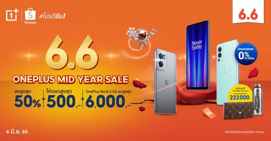 6.6 OnePlus Mid Year Sale ลดสูงสุด 50% + คูปองลดเพิ่มสูงสุด 500.- เฉพาะ 6 มิ.ย. 25645 เท่านั้น