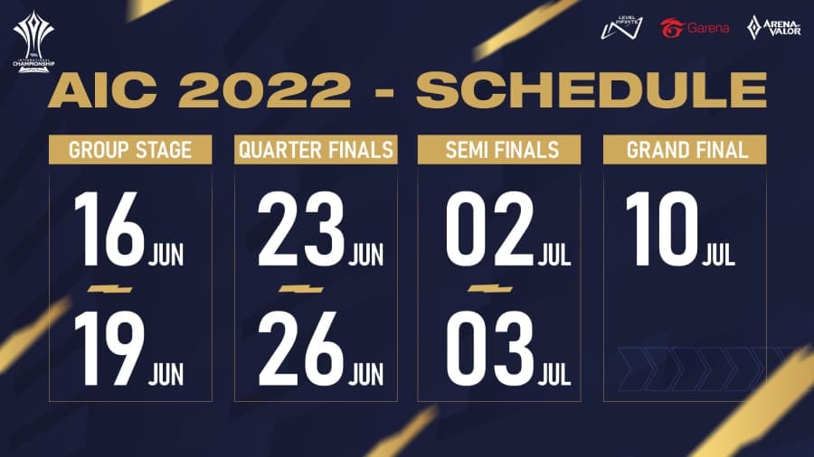 การแข่งขัน AIC 2022 จะถูกจัดขึ้นในระหว่างวันที่ 16 มิถุนายน ถึงวันที่ 10 กรกฎาคม 2565 โดยจะแบ่งการแข่งขันออกเป็น 4 รอบ ทั้ง Group Stage, Quarter Finals, Semi Finals และ Grand Final สำหรับรอบ Group Stage ทั้ง 16 ทีมจะถูกแบ่งออกเป็น 4 กลุ่ม โดยจะแข่งขันกัน 2 ช่วง จากนั้นในรอบ Quarter Finals เราจะได้เห็นโฉมหน้าของ 8 ทีมสุดท้าย โดยการแข่งขันในรอบ Quarter Finals วันที่ 23-26 มิถุนายน และรอบ Semi Finals วันที่ 2-3 กรกฎาคม จะทำการแข่งขันในรูปแบบ double-elimination หรือแพ้สองครั้งตกรอบ