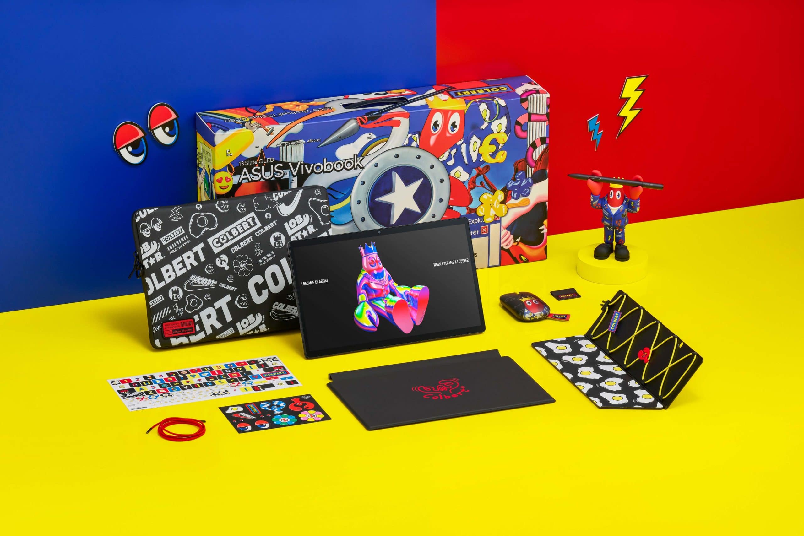 เอซุส ยังร่วมกับศิลปินชื่อดังระดับโลก ฟิลิป กอลแบร์ (Philip Colbert) และ สตีเวน พี. แฮร์ริงตัน (Steven P. Harrington) เปิดตัว Vivobook 13 Slate OLED สองรุ่นสุดพิเศษ มาพร้อมอุปกรณ์เสริมดีไซน์เฉพาะ ไม่ซ้ำใคร เอาใจวัยรุ่น ทั้งกระเป๋า, เม้าส์, ปากกาสไตลัส, ตัวขาตั้งแม่เหล็ก (Cover Stand) เป็นต้น โดยVivobook 13 Slate OLED รุ่นพิเศษนี้ ยังมาพร้อมจอภาพ ASUS OLED หน้าจอสัมผัส ขนาด 13.3 นิ้ว ที่ให้สีสวยสดใส คมชัด พร้อมถนอมสายตา พกพาได้สะดวก เติมความสนุกสนานทุกการใช้งาน