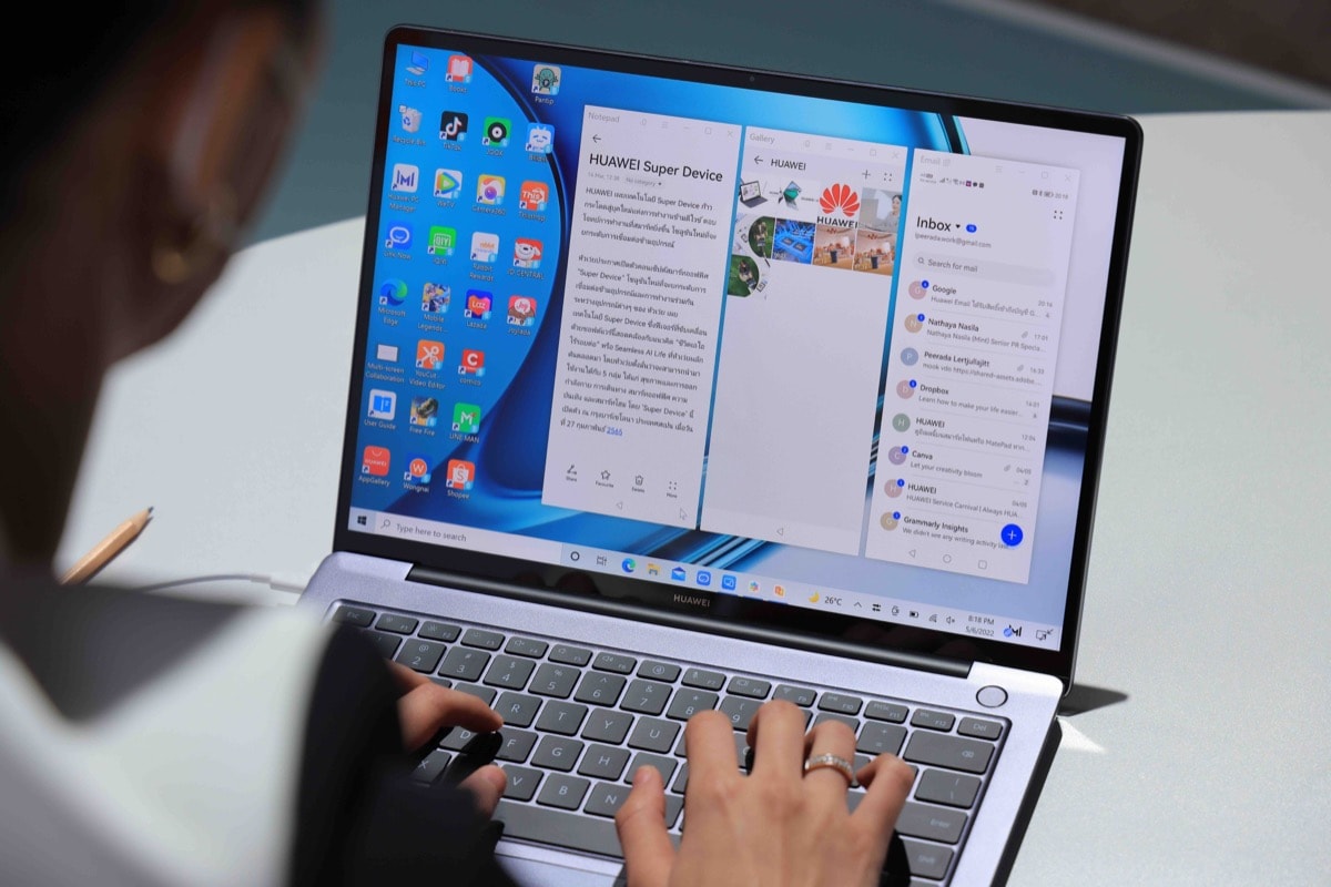 ตลอดระยะเวลาที่ผ่านมา สมาร์ทโฟนถือเป็นอุปกรณ์ศูนย์กลางในการควบคุมสมาร์ทดีไวซ์และเชื่อมต่อไปยังอุปกรณ์ IoT เพื่อสร้างประสบการณ์การใช้งานที่หลากหลาย และครอบคลุมการใช้ชีวิตในทุกมิติ แต่สำหรับการทำงานออฟฟิศ พีซีและแล็ปท็อปถือเป็นศูนย์กลางในการทำงาน หัวเว่ยจึงได้รังสรรค์ HUAWEI Super Device ฟีเจอร์ในการทำงานข้ามอุปกรณ์แบบไร้สายภายใต้ HUAWEI Smart Office คอนเซปโซลูชั่นใหม่ โดยจะเชื่อมโยงอุปกรณ์ทุกตัวเข้าด้วยกันเพื่อให้เกิดประสบการณ์การใช้งานที่เป็นหนึ่งเดียวบนเครื่องแล็ปท็อปและพีซีได้อย่างราบรื่น ไม่สะดุด ตอบโจทย์การทำงานหลากหลายรูปแบบ ไม่ว่าจะเป็น
