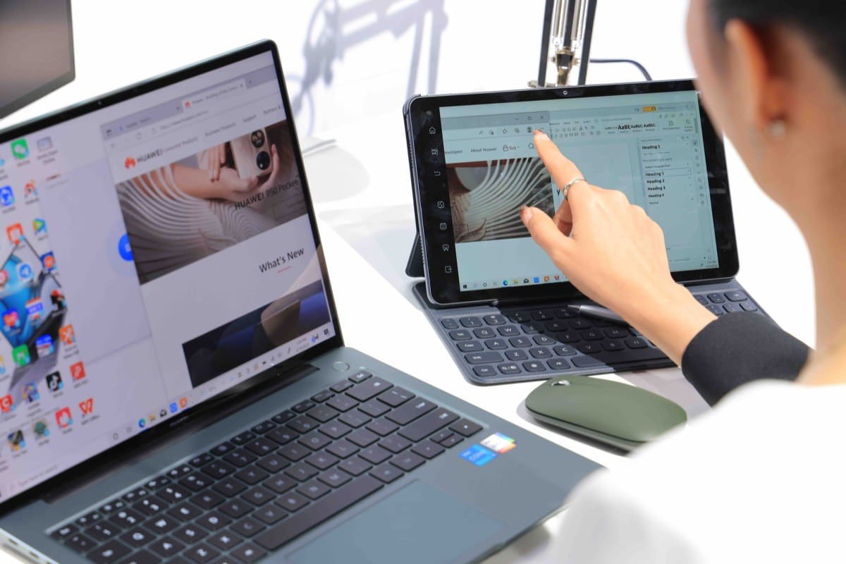 - Super Co-creation: นักสร้างสรรค์ที่เป็นเจ้าของแท็บเล็ตล่าสุดจากหัวเว่ยอย่าง HUAWEI MatePad 10.4-inch 2022 ย่อมต้องการอิสระในการขีดเขียนหรือทำงานได้ทุกที่ ลองจับคู่กับ HUAWEI MateBook 14s จะยิ่งตอบโจทย์การทำงานที่จำเป็นต้องใช้หน้าจอเสริม