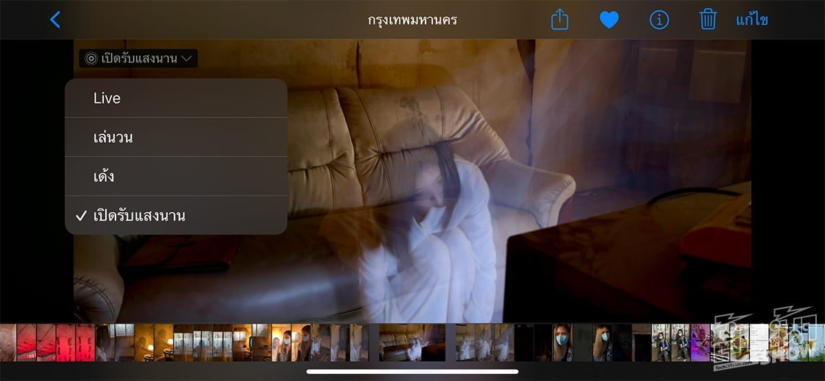 หลายครั้งในการถ่ายภาพในสภาพแสงน้อยหรือเวลากลางคืน iPhone 13 Pro ก็จะเก็บภาพที่สว่างขึ้นกว่าที่เรามองเห็นไปพอสมควร ก็อาจจะทำให้รู้สึกว่าอารมณ์ที่ถ่ายมาจะดูสว่างเกินไป หรือในบางที่ๆ สว่างแต่เราต้องการให้ดูมืดลง เราจะต้องทำการแกล้งไอโฟน