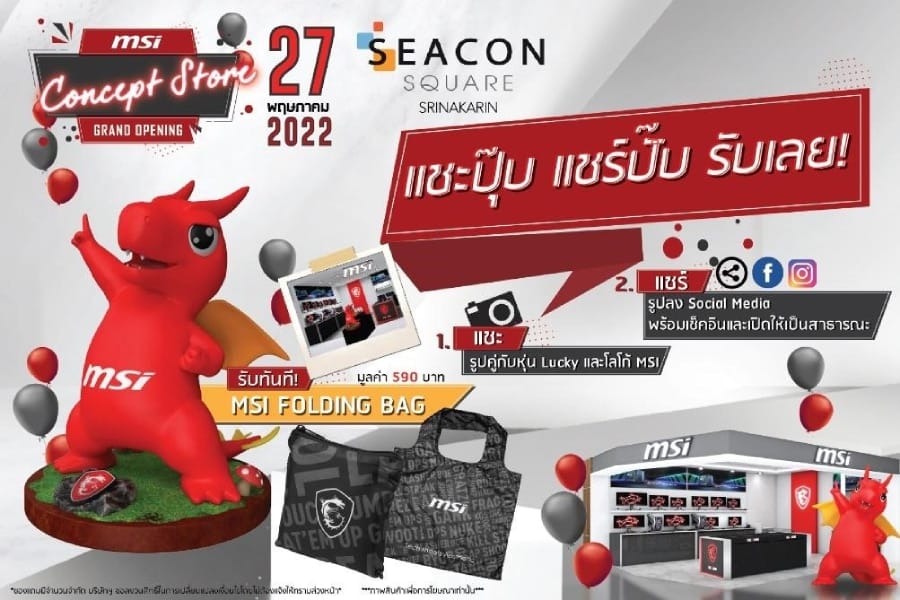 สำหรับเหล่าแฟนๆ MSI และผู้ที่สนใจ สามารถแวะเวียนมาสัมผัสสินค้าตัวจริงได้ที่ MSI Concept Store บริเวณชั้น B1 ศูนย์การค้าซีคอนสแควร์ ศรีนครินทร์