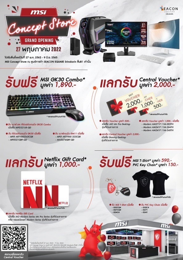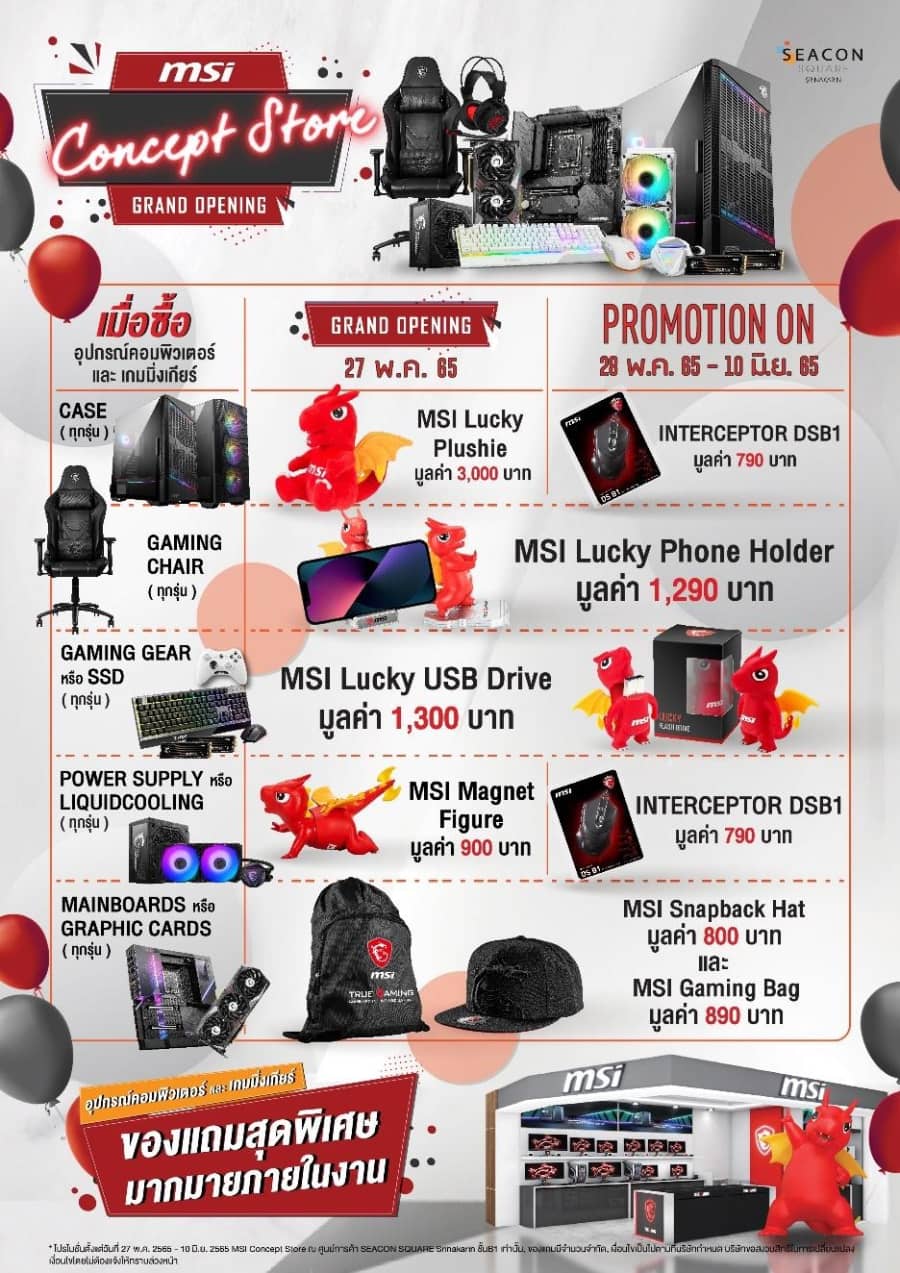 โปรโมชั่นพิเศษ เฉพาะที่ร้าน MSI Concept Store สาขาซีคอนสแควร์ ศรีนครินทร์ ตั้งแต่วันที่ 27 พ.ค. 65 – 9 มิ.ย. 65 เท่านั้น