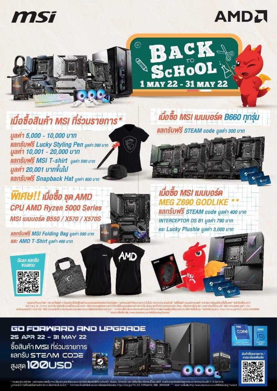และหากซื้อสินค้าที่ร่วมรายการภายในวันที่ 31 พ.ค. 65 ยังสามารถแลกของแถมเพิ่มเติมจากโปรโมชั่น Back To School และ Go Forward and Upgrade ของทาง MSI ได้อีกด้วย