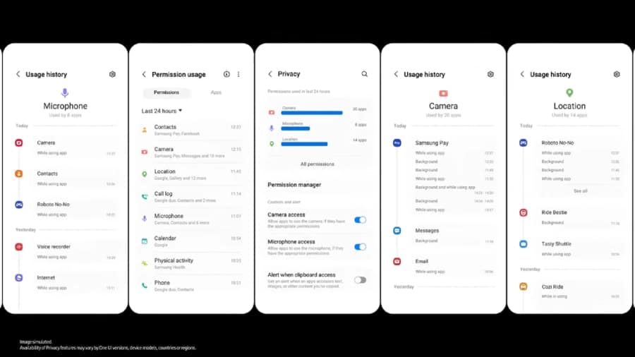 อีกทั้ง ยังใช้งานได้อย่างสบายใจไม่ต้องกังวลว่าแอปฯ ไหนจะสะกดรอยด้วย OneUI 4.0 ใน Galaxy S22 Series ที่มาพร้อมกับหมวดการตั้งค่า ความเป็นส่วนตัว (Privacy) ที่ผู้ใช้สามารถเช็คได้ทันทีว่ามีแอปพลิเคชันไหนเปิดใช้งานกล้อง ไมโครโฟน หรือโลเคชั่นอยู่บ้าง และสามารถเลือกอนุญาตหรือปฏิเสธการเข้าถึงจากแต่ละแอปฯ แม้กระทั่งปฏิเสธการเข้าถึงทุกแอปพลิเคชันก็ทำได้อย่างง่ายดายในเมนูเดียว