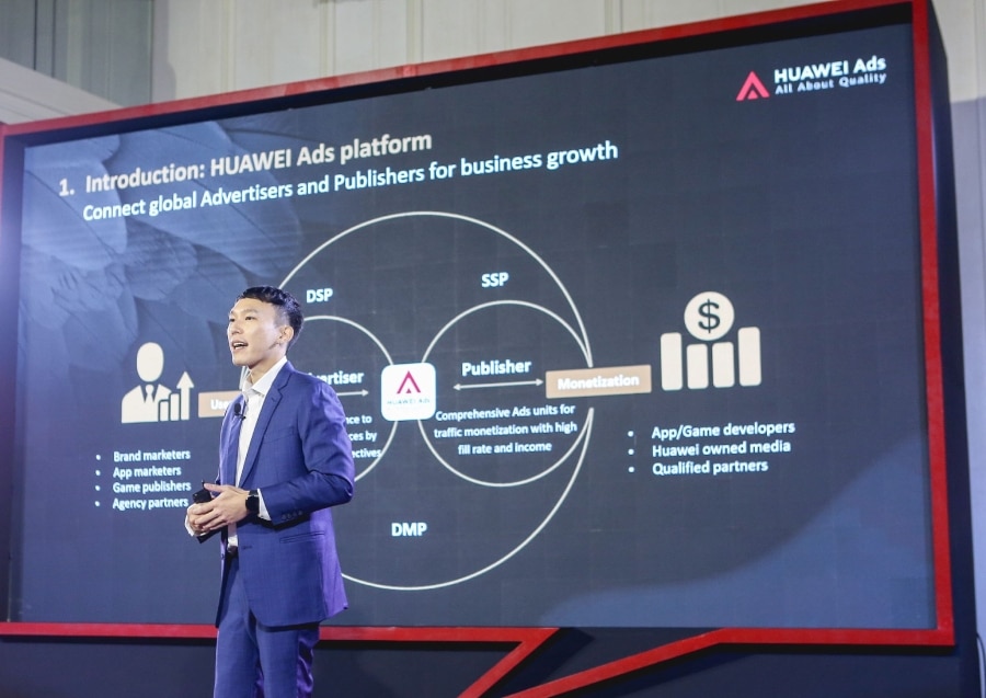 โดยระบุว่า “HUAWEI Ads เป็นแพลตฟอร์มที่มีประสิทธิภาพสูงในการเข้าถึงฐานผู้ใช้อุปกรณ์หัวเว่ยทั่วโลกที่มีอยู่มากกว่า 730 ล้านคน โดยใช้แพลตฟอร์มการจัดการข้อมูล (Data Management Platform หรือ DMP) ในการกำหนดกลุ่มเป้าหมายตามการใช้งานและพฤติกรรมการใช้แอปพลิเคชัน