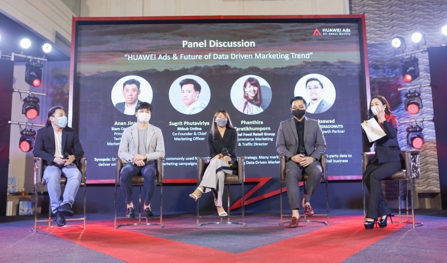 และร่วมเวทีเสวนาแลกเปลี่ยนความคิดเห็นในหัวข้อ “HUAWEI Ads & Future of Data Driven Marketing Trend” ร่วมกับตัวแทนภาคธุรกิจระดับแนวหน้า คุณภัณฑิรา ธราทิฆัมพร ผู้อำนวยการฝ่าย E-commerce Marketing & Traffic จาก Central Food Retail Group, คุณสุกฤษฎิ์ พุทธวิริยะ ประธานเจ้าหน้าที่ฝ่ายการตลาดและผู้ร่วมก่อตั้งบิทคับ ออนไลน์ และคุณอนันต์ จินาวงศ์ หัวหน้าฝ่าย Marketing Technology, Digital Marketing and Optimization จากธนาคารไทยพาณิชย์ (SCB) มาร่วมพูดคุยอย่างเปิดกว้าง แบ่งปันประสบการณ์และวิสัยทัศน์ที่มีต่อเทรนด์การตลาดดิจิทัล รวมถึงโอกาสและศักยภาพของ HUAWEI Ads ในยุคที่ขับเคลื่อนด้วยดาต้า