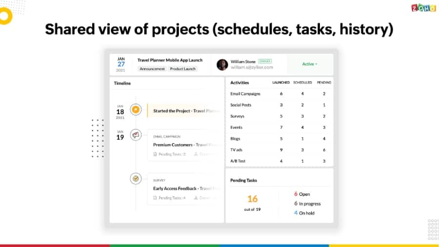 Zoho ได้รวมกระบวนการทางการตลาดเข้ากับแพลตฟอร์มใหม่ล่าสุด เพื่อช่วยขับเคลื่อนธุรกิจให้เติบโตไปข้างหน้า และเพื่อยกระดับประสบการณ์ของลูกค้า