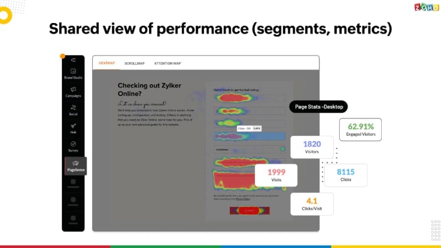 แพลตฟอร์มแบบรวมศูนย์ประกอบด้วยโซลูชั่นแบบผสานรวมสารพัดชนิดที่สนับสนุนนักการตลาดดิจิทัลให้บรรลุผลลัพธ์ที่ดียิ่งขึ้น โดยช่วยให้เกิดกระบวนการทำงานที่ง่ายกว่าเดิม อีกทั้งทำงานร่วมกันที่ใกล้ชิดกันยิ่งขึ้น ใช้สินทรัพย์ต่างๆ ร่วมกันได้ และให้ข้อมูลที่สอดคล้องกัน แพลตฟอร์ม Zoho Marketing Plus ได้รวมความสามารถของแอปพลิเคชั่น Zoho หลายตัว ได้แก่ Workdrive, Marketing Automation, Campaigns, Brand Studio, Analytics, PageSense, Social, Survey และ Backstage โดยแพลตฟอร์มล่าสุดในกลุ่ม Marketing Plus นี้จะยังคงพัฒนาต่อไปผ่านการผสานรวมเข้ากับเครื่องมือ Zoho ที่มีอยู่ให้มากยิ่งขึ้น เช่น Cliq ตลอดจนแอปพลิเคชั่นใหม่ ๆ รวมถึง LandingPage ซึ่งเป็นตัวสร้างเพจแบบไม่ใช้โค้ด (No-code) ที่นักการตลาดสามารถสร้างหน้า Landing Page ของเว็บไซต์ที่มีอัตราการแปลงสูง (High-converting) ได้โดยไม่จำเป็นต้องใช้ทักษะระดับนักพัฒนา