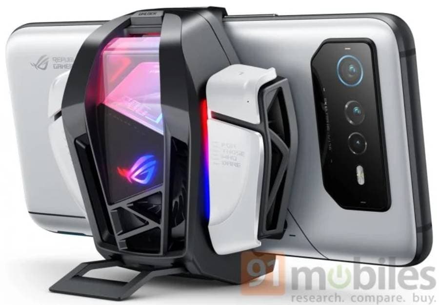รายงานใหม่ล่าสุดจากเว็บไซต์ 91mobiles และแหล่งข่าววงในอย่าง Evan Blass ก็ได้เผยภาพเรนเดอร์ของสมาร์ทโฟนรุ่นใหม่นี้ ที่เผยให้เห็นดีไซน์ทั้งหมดของ ROG Phone 6 รวมไปถึงอุปกรณ์เสริมและเคสป้องกันด้านหลังที่ทำหน้าที่เป็นระบบระบายความร้อนในตัว