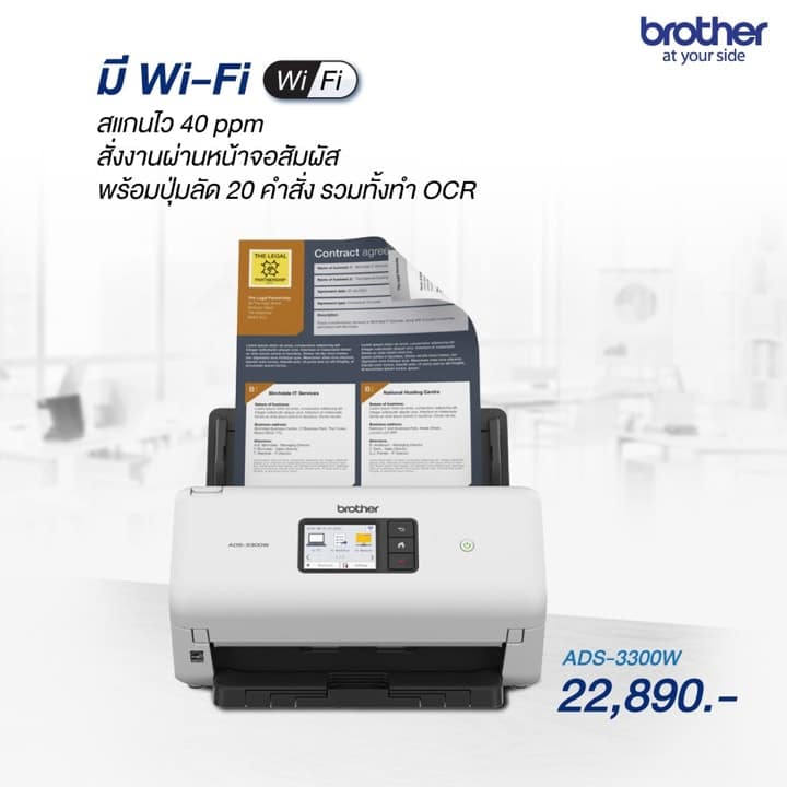 Brother เปิดตัวกลุ่มนวัตกรรมผลิตภัณฑ์ กลุ่ม สแกนเนอร์แบบตั้งโต๊ะ รุ่นล่าสุด ที่พัฒนาเทคโนโลยีการเชื่อมต่อเน็ทเวิร์ค ไวไฟ สแกนเอกสารง่ายผ่านคลาวด์เซอร์วิส ตอบโจทย์การเรียกใช้งานเอกสารทำงานได้ทุกที่ทุกเวลา ทั้งยังช่วยลดต้นทุนและลดพื้นที่การจัดเก็บเอกสารแบบเดิม มาพร้อมประสิทธิภาพการสแกนด้วยความเร็วสูง ทำงานร่วมกับกับซอฟต์แวร์จัดการเอกสาร สามารถแยกหรือรวมไฟล์เอกสารแบบอัตโนมัติ รวมทั้งสามารถสแกนเอกสารได้หลากหลายรูปแบบ และรองรับการสแกนเอกสารจำนวนมากต่อวัน พลิกโฉมการออกแบบด้วยหน้าจอระบบสัมผัส ลดการใช้งานผ่านคอมพิวเตอร์ เพิ่มความคล่องตัวในการทำงานมากขึ้น