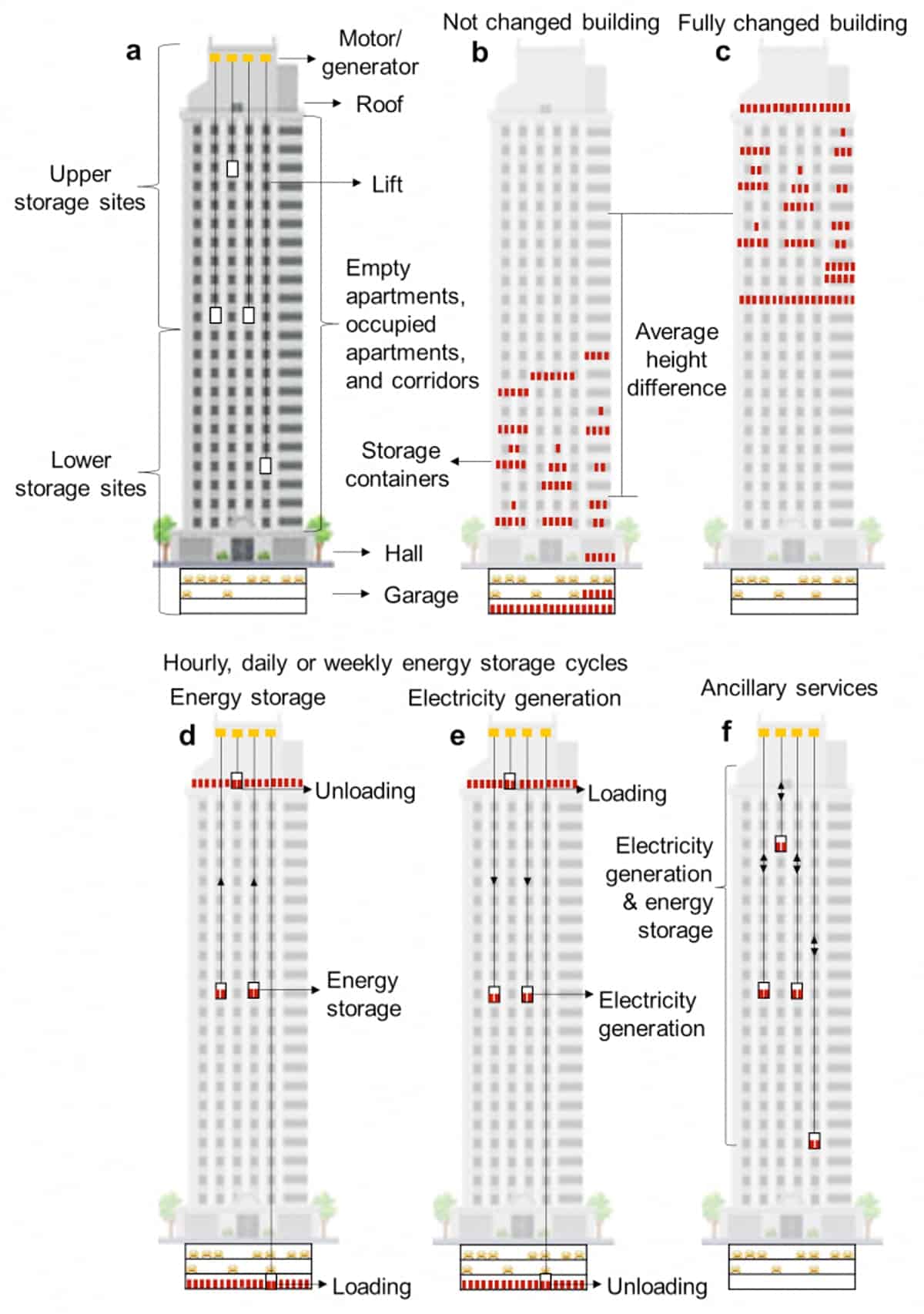 นักวิจัยจากสถาบันระหว่างประเทศเพื่อการวิเคราะห์ระบบประยุกต์ (International Institute for Applied Systems Analysis หรือ IIASA) ได้คิดค้นระบบที่ใช้แรงโน้มถ่วงจากการใช้งานลิฟต์ในอาคารสูงๆ เพื่อผลิตและเก็บกระแสไฟฟ้า