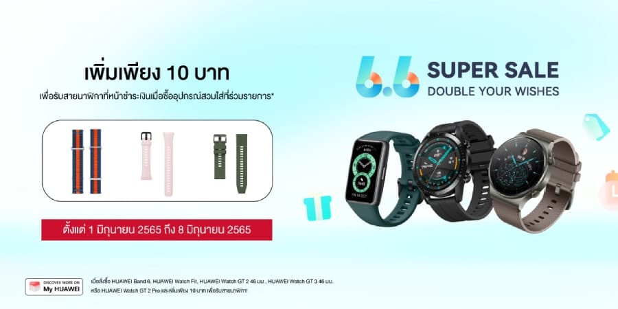 หัวเว่ย คอนซูมเมอร์ บิสสิเนส กรุ๊ป (ประเทศไทย) จัดมหกรรมแคมเปญชอปปิงออนไลน์สุดยิ่งใหญ่ต้อนรับกลางปี ส่งดีลปัง HUAWEI 6.6 Sales ยกทัพสมาร์ทดีไวซ์สุดล้ำหลากหลายกลุ่มผลิตภัณฑ์ไม่ว่าจะเป็นแท็บเล็ต สมาร์ทวอทช์ และจอมอนิเตอร์ มาให้เลือกจับจองเป็นเจ้าของในราคาลดพิเศษสูงสุดถึง 40% พร้อมยกกำลังความคุ้มค่า แค่จ่ายเพิ่มเพียง 10 บาท รับสายนาฬิกาเพิ่มไปเลย เมื่อซื้อสมาร์ทวอทช์รุ่นที่ร่วมรายการ จำกัดเวลาร่วมโปรเด็ดโดนใจแบบไม่กลัวฝนตั้งแต่วันที่1 มิถุนายน 2565 ถึงวันที่ 8 มิถุนายน 2565 เมื่อซื้อสินค้าผ่านช่องทาง HUAWEI Store และร้านค้าอย่างเป็นทางการของหัวเว่ยบนแอปพลิเคชัน Lazada และ Shopee เท่านั้น