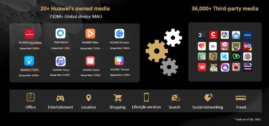 นอกจากนี้ หัวเว่ยยังใช้แพลตฟอร์มการจัดการข้อมูล (Data Management Platform หรือ DMP) กำหนดกลุ่มเป้าหมายและพฤติกรรมการใช้งาน โดยอ้างอิงข้อมูลจากอีโคซิสเต็มมือถือของหัวเว่ยซึ่งทำงานร่วมกับอัลกอริทึมและสถาปัตยกรรมของอุปกรณ์หัวเว่ย
